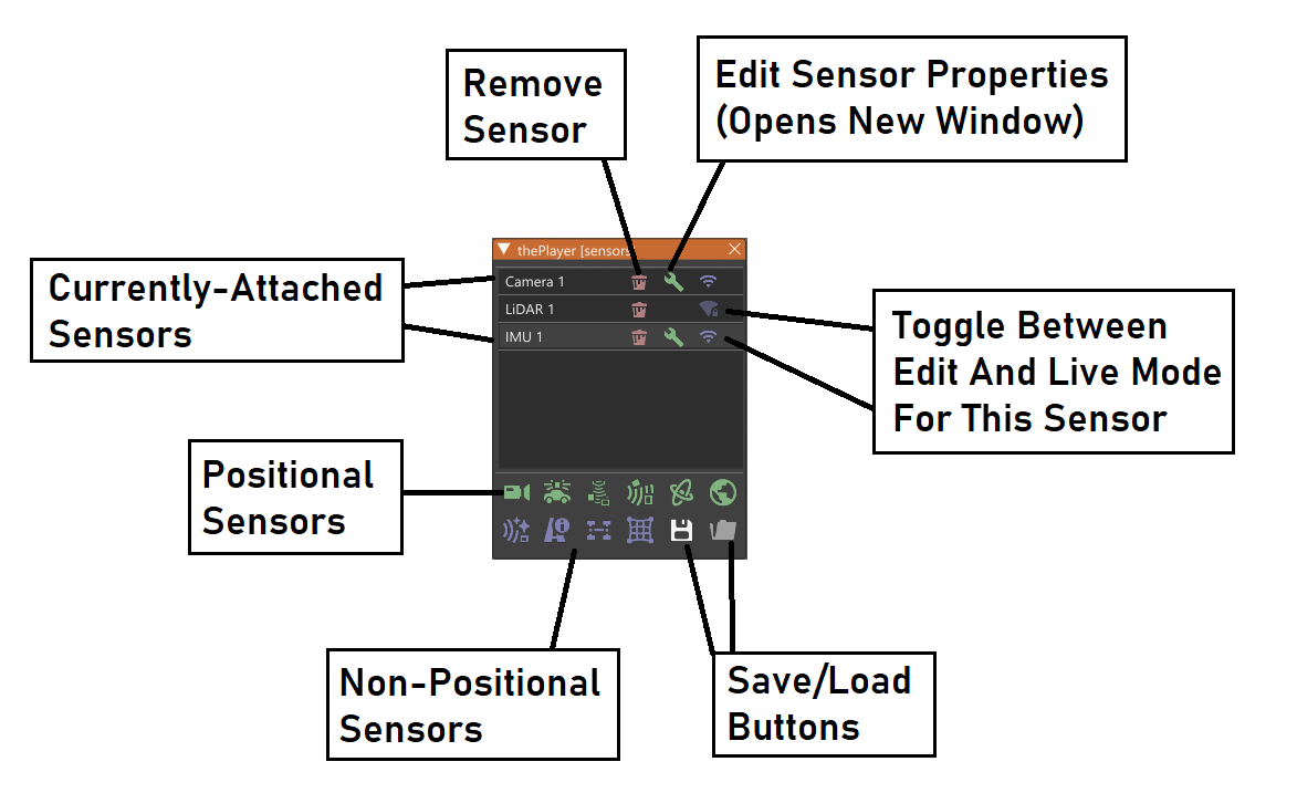Edit Sensor will open the corresponding Edit Sensor Window for that specific sensor, where the user can change the properties and pose of the sensor.