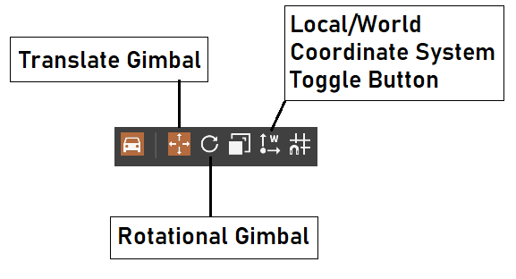 To change the sensor position, the world editor gimbals can be used. These are found in the top bar of the World Editor: