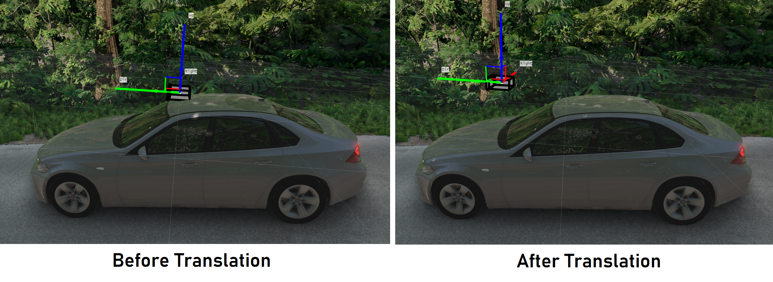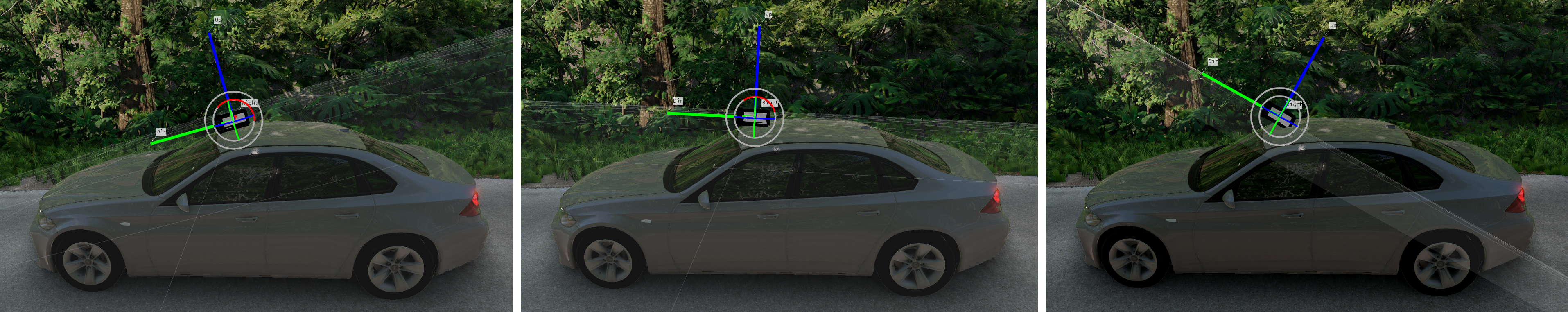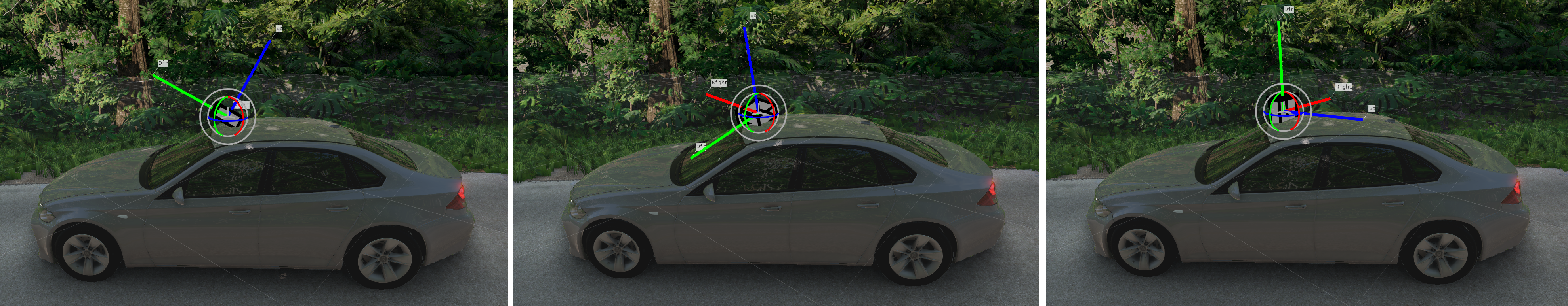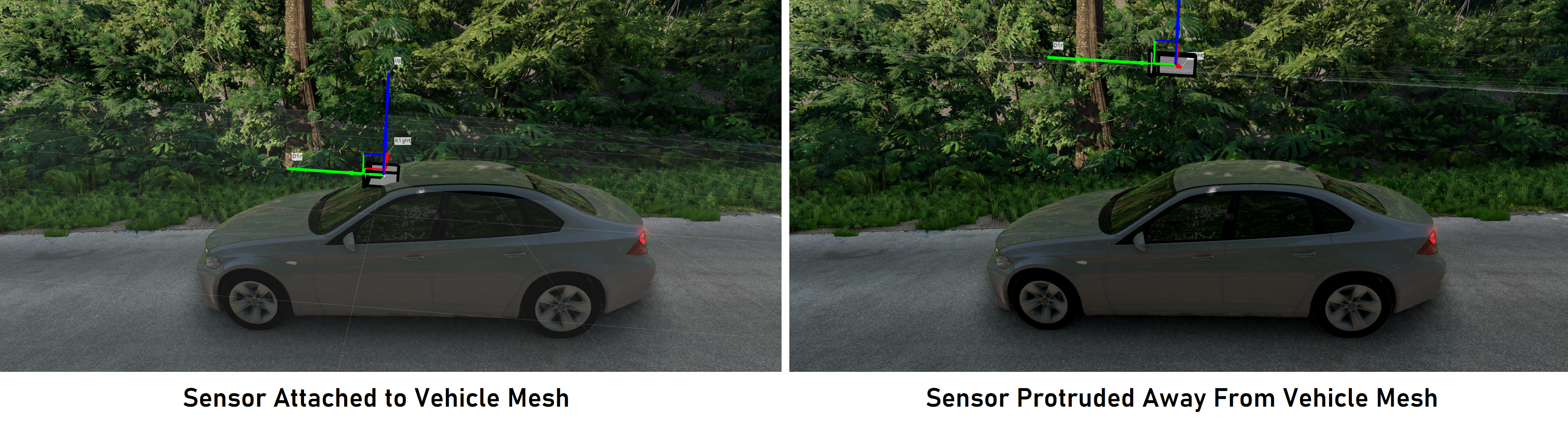 This is why the actual triangle to which the sensor is attached is important - it is the orientation of that triangle which will be inherited by the sensor. The user cannot set this, however. We point this out for informative reasons, for when/if the user creates a sensor which is quite far away from the vehicle mesh.