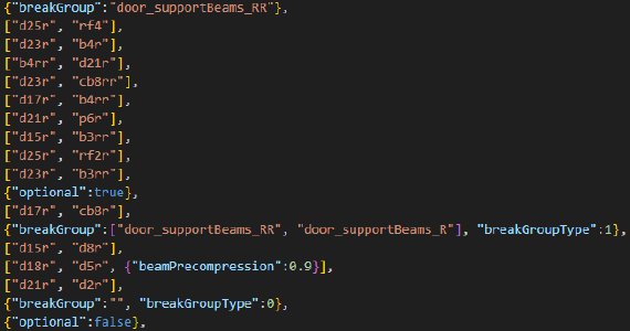 It is often the best to set up a dummy beam, with no spring or damp, max deform and strength, with disableMeshBreaking and disableTriangleBreaking properties, with the breakGoup (or multiple of them) you want to be linked to the rail/torsionbar, positioned between 2 of its nodes, and breakGroupType set to 1. This beam will exist purely to break the rail/torsionbar and won’t have any side effects.