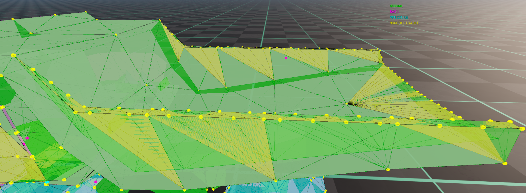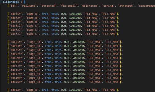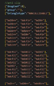 NONCOLLIDABLE triangles on top of the triangles that are already in the part, between the collision slidenodes and the structural nodes, as if you were Jbeaming it normally without the triangles of the structural nodes existing. This way, the anticlip system will work for the collision slidenodes, preventing them from getting stuck, without the performance cost of adding more collidable triangles.