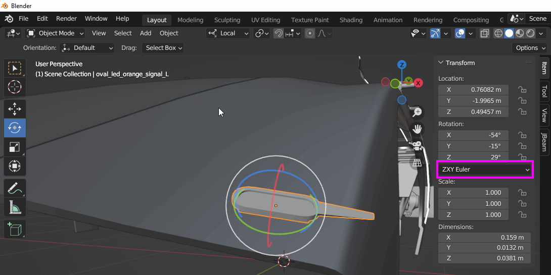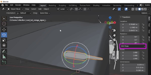 When using generic common flexbodies, such as offroad lights, you often need to rotate them by several axis at once to align with the rest of the 3D model.