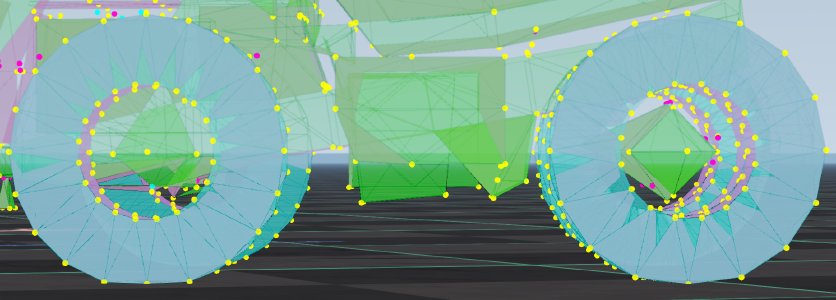 Static collision has a bigger performance impact for map objects than for heightmap collision. So for a vehicle that will be often driving over map assets like rocks rather than a normal decal road, it is more important to have less nodes on the bottom. This is why skidplates on rock crawlers don’t have too big node density.
