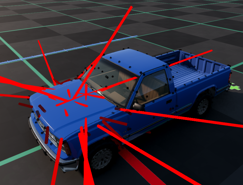 Meanwhile, beam stress debug will behave closer to how it does on a normal vehicle - the difference being that naturally stressed beams, such as those on tires, will appear a lot more pronounced, making it harder to notice actual issues.