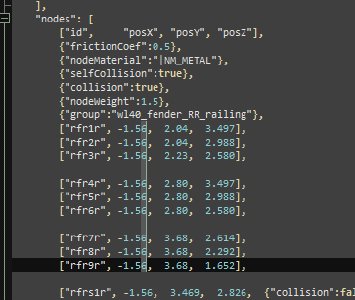 If you use Cursor instead of Visual Studio Code to edit your Jbeam files, you can get help from the built-in AI. While it cannot design Jbeam structures for you, it is useful for long, boring, precise tasks, such as tweaking the positions of many of slidenodes to align with their rails.
